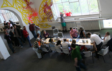 mehr bilder der baustelleneröffnung... bilder vom betonmischerkonzert... fotografien: © angela kröll mezzanin 28. mai 08 . 18 uhr dialogue with john hopkins guest: mathieu dagorn dialogue, as the open exchange of life-time and life-energy, is a direct source of inspiration for the self and other. further information: www.neoscenes.net ![]() ghostbusters painting . drawing . photography . object laufzeit: 16. - 23. mai 08 jürgen grewe . andrej glusgold . briac leprêtre steven lepriol . bas louter . roland moreau ![]() mehr ausstellungsbilder... mezzanin 21. mai 08 . 18 uhr talk: 'kunst ist nicht umsonst' ausstellungsvergütung für bildende künstler/innen ![]() weniger geld, mehr liebe die privatsammlung von thibaut de ruyter laufzeit: 01. - 14. mai 08 werke von arman . barbara breitenfellner . thomas bruns . michel couturier . martin dammann . damien deroubaix . sammy engrammer . heike gallmeier . irwin . baudouin luquet . roland moreau . gwenaël salaün . annie sprinkle . assan smati . joep van liefland . wolf vostell ![]() mehr ausstellungsbilder... mezzanin talk: 30. april 08 . 18 uhr 'why self-organized?' offene gesprächsrunde mit künstlerischen projektmanagern und netzwerkern soupe populaire 28. april 08 . 18 uhr hühnersuppe und kürbissuppe commis de cuisine: iris irene stoeber . dorotea etzler gastrosophic dessert . performance île en chantier (insel baustelle) der nachtisch als kunstwerk stephanie chauvat ![]()