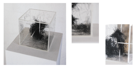 in einem würfel aus acrylglas, in dessen inneren drei